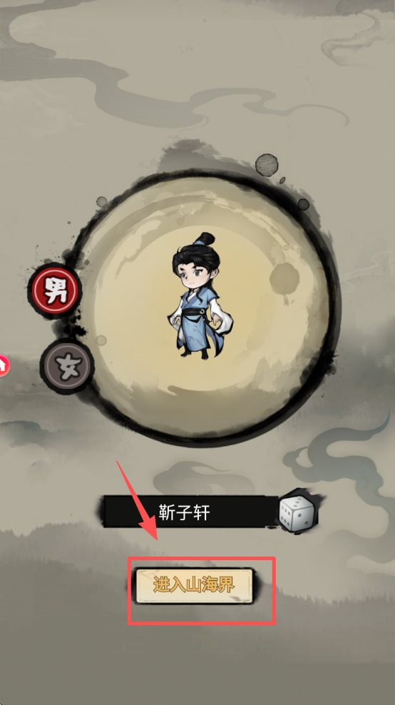 2、选择角色性别,并点击“进入山海界”按钮。