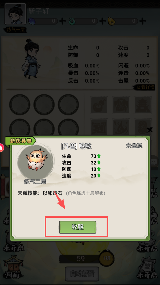 4、查看异兽属性,点击“收服”按钮将其加入你的队伍。