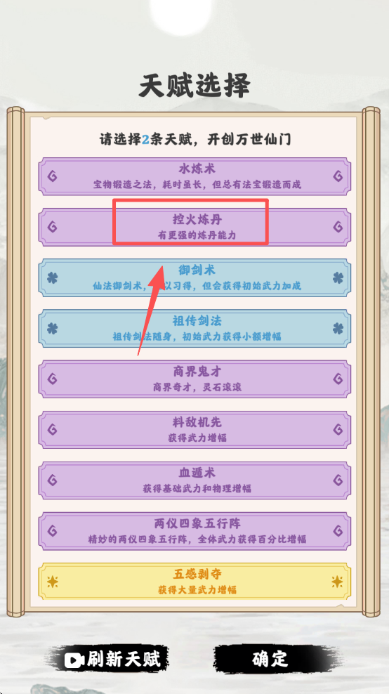3、选择两条天赋,点击“确定”以确认你的选择。