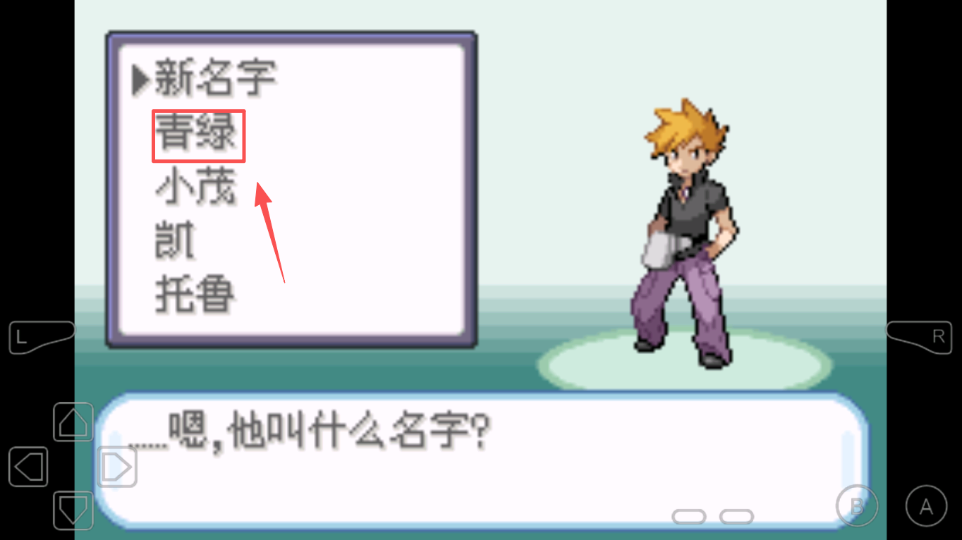 3、从列表中选择一个名字,或自定义后按A键确认。