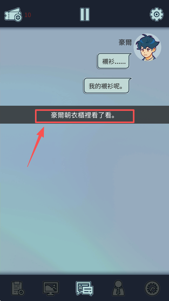 3、在对话界面,选择“豪尔朝衣櫃裡看了看”来推进剧情。