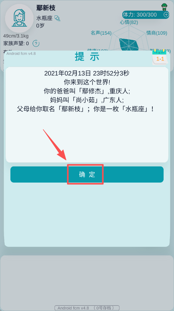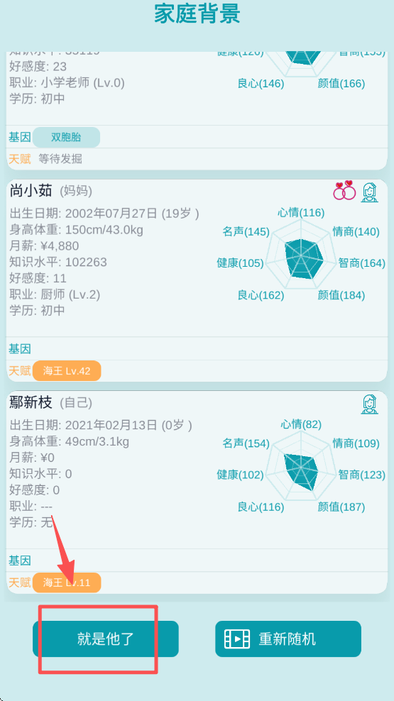 2、在家庭背景界面,点击“就是他了”确认角色信息。