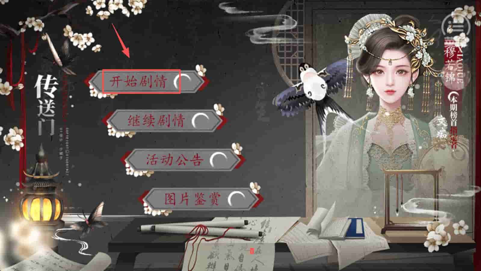 1、进入游戏剧情,点击“开始剧情”按钮,进入游戏,开始体验宫廷故事。