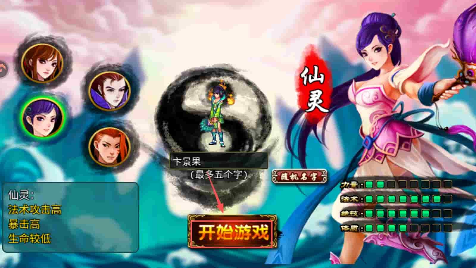 2、选择角色,在角色选择界面,点击“开始游戏”按钮,创建并选择你的角色。
