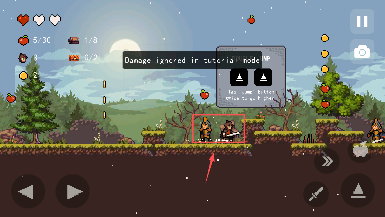 2、在教程模式下,学习如何使用跳跃和双跳来避开障碍和敌人。