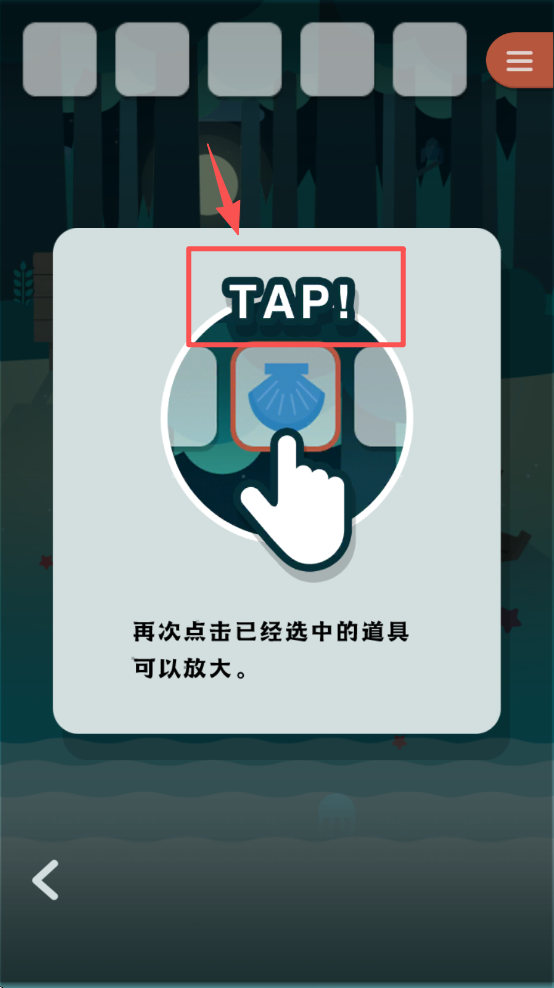 2、了解操作提示,根据提示,点击“TAP!”了解如何使用道具。