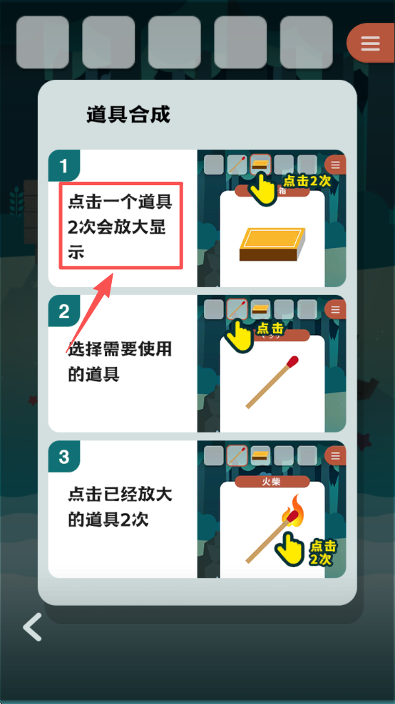 3、道具合成,学习如何通过点击两次来放大并选择道具进行合成。