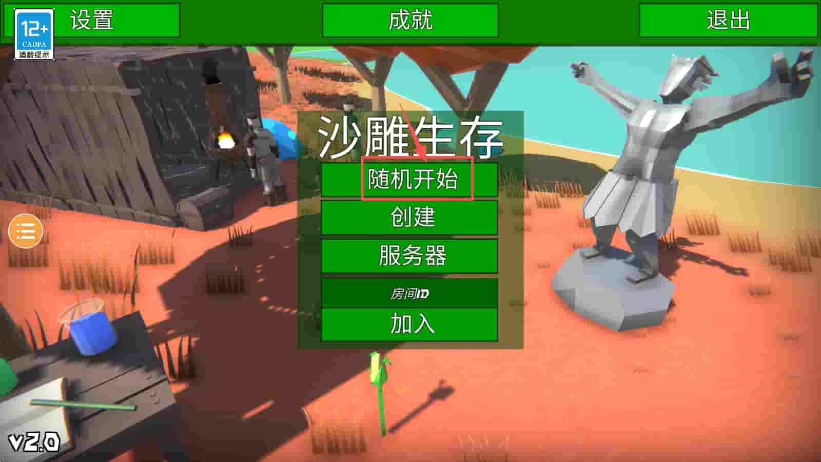 2、在主菜单中选择“随机开始”以随机加入一个游戏房间。
