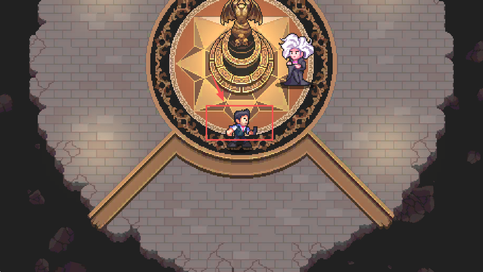 4、操控角色移动到金色法阵区域,完成场景切换前的准备操作。