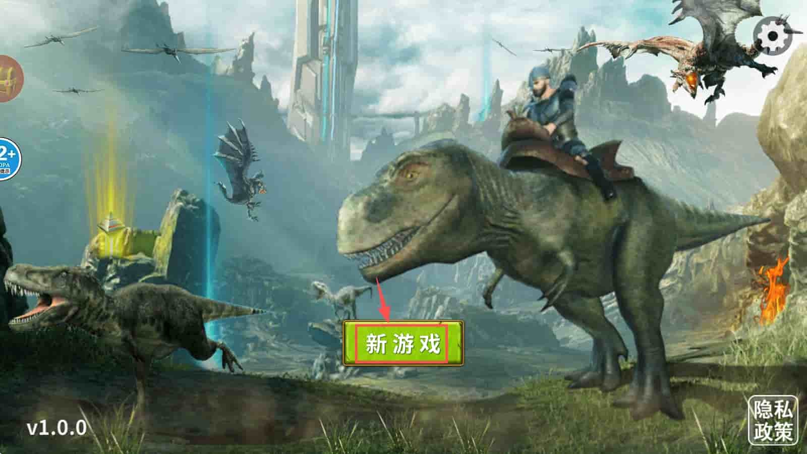1、点击“新游戏”按钮,开始你的恐龙世界生存冒险之旅。