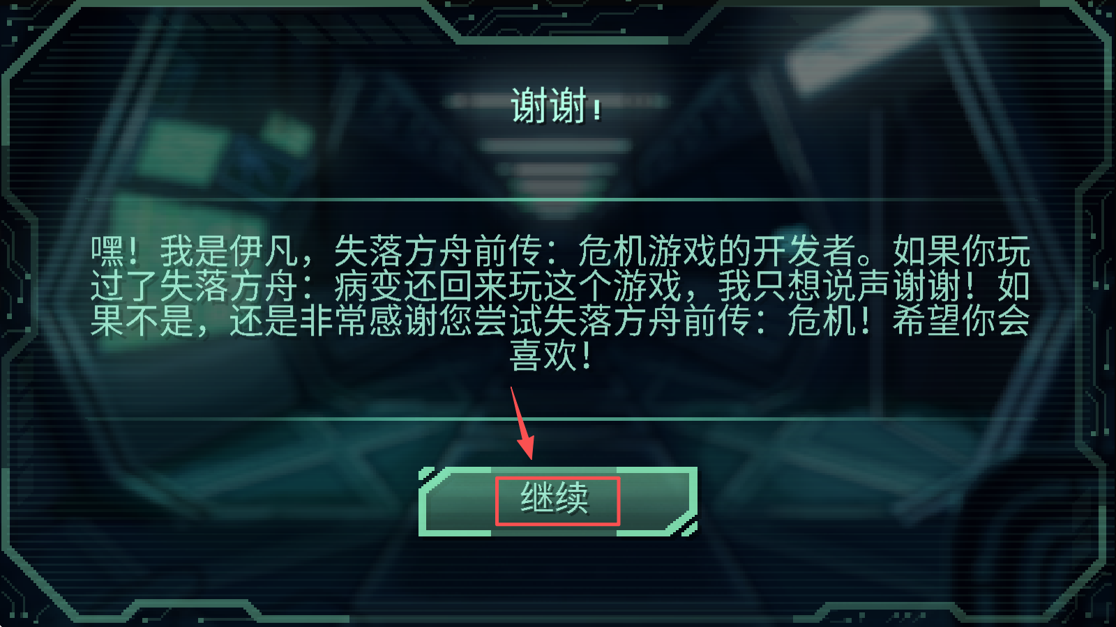 3、阅读开发者感谢信息后,点击“继续”按钮,进入游戏主界面。