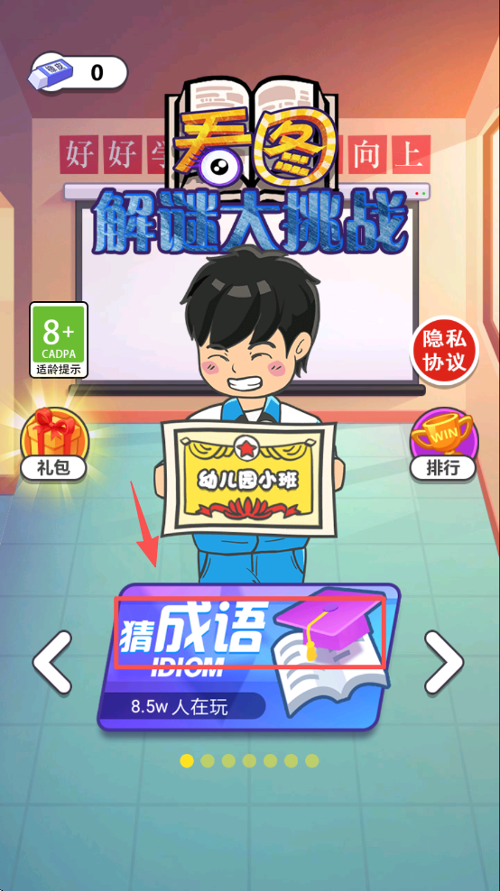1、点击“猜成语”按钮,进入游戏,开始你的成语猜谜挑战。