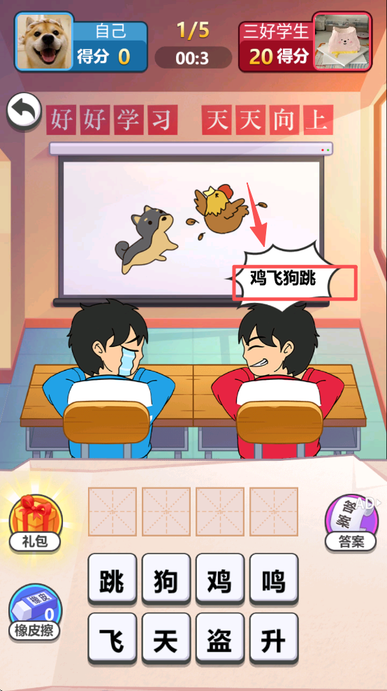 3、根据图片提示,从下方选项中选择正确的成语,完成猜谜。