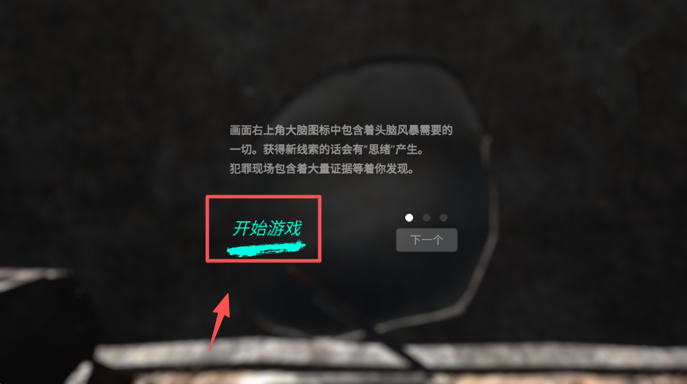 2、点击“开始游戏”按钮,进入案件调查,寻找线索。