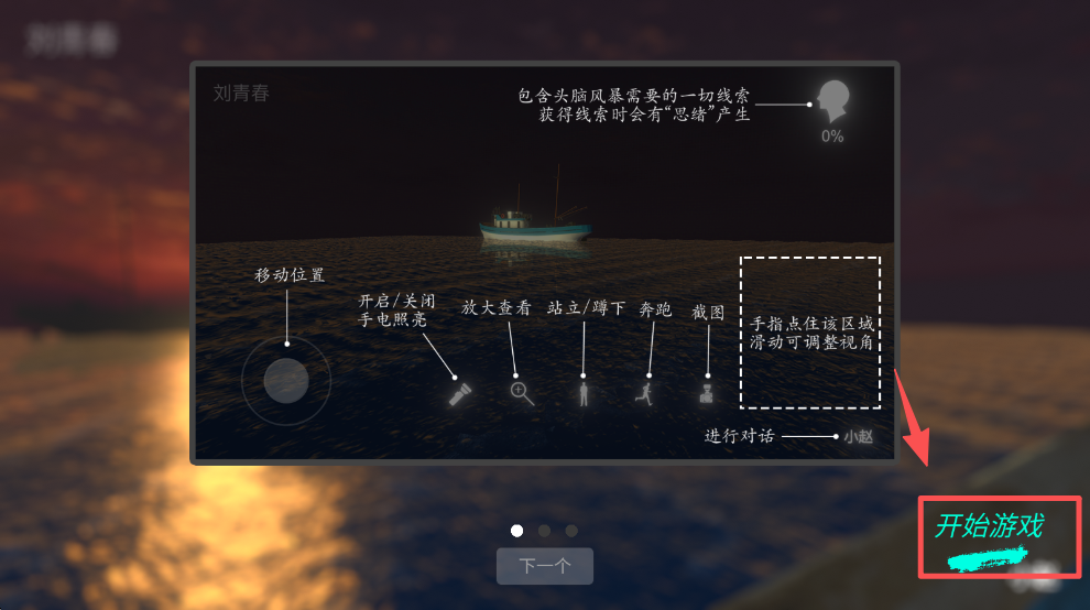 3、查看操作指引界面的功能说明后,点击 “开始游戏” 按钮,进入实际调查环节。