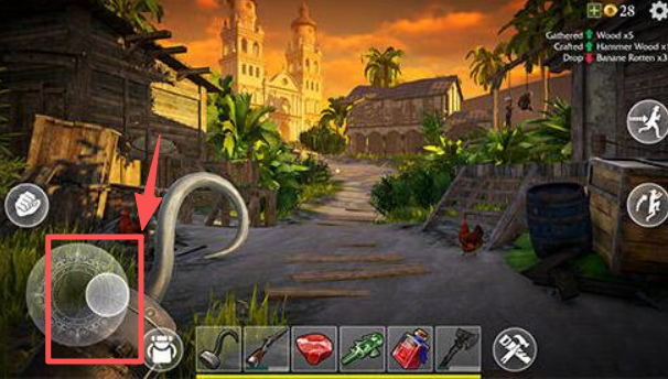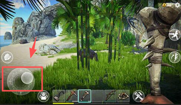 3、使用左侧的移动控制按钮,操控角色在荒岛场景中移动探索。