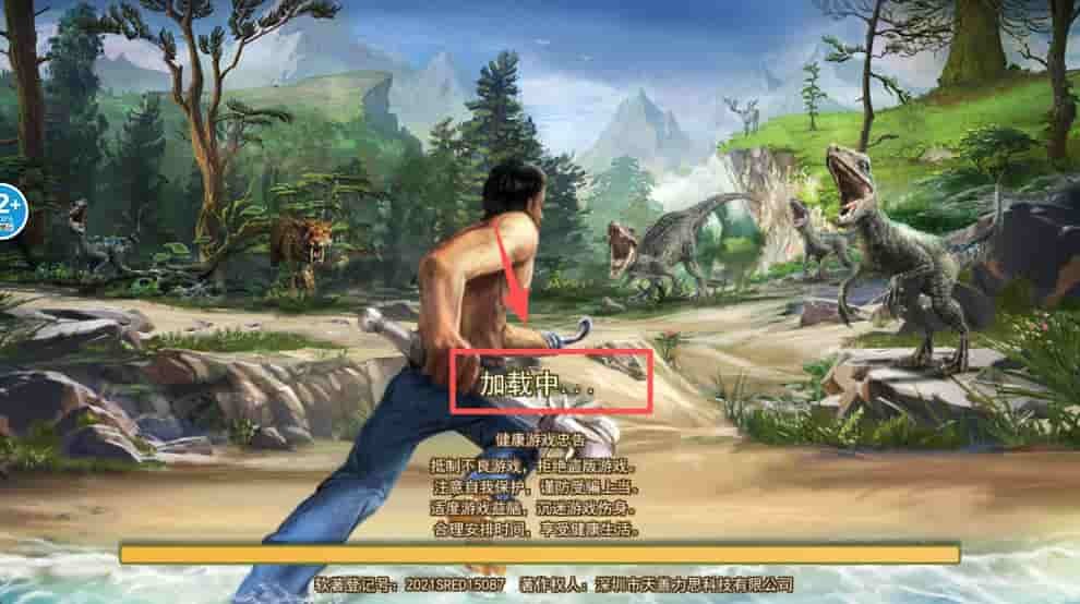 1、等待游戏加载完成,进入荒岛生存游戏的初始场景。