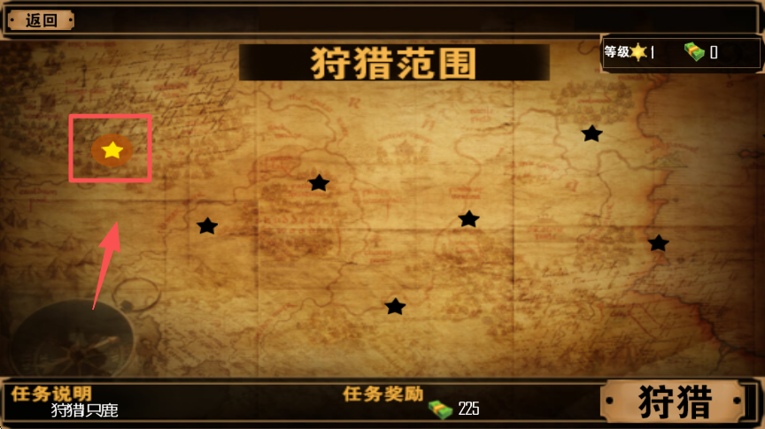 2、在狩猎范围地图上选择一个地点,点击星星标记开始你的狩猎。