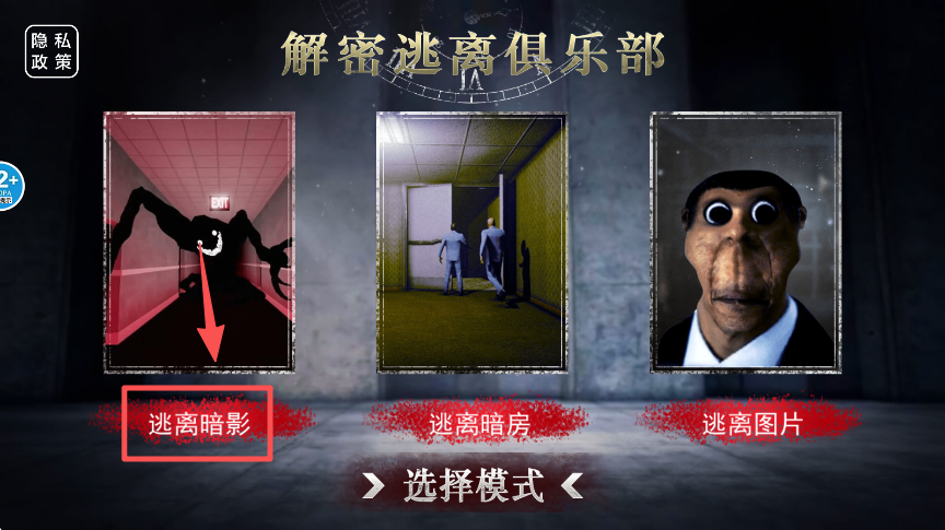 2、选择“逃离暗影”模式,点击“选择模式”按钮,开始特定关卡。