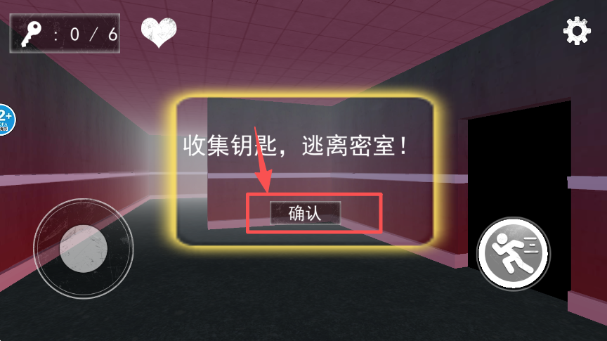 3、阅读任务目标,点击“确认”按钮,了解逃脱任务和目标。