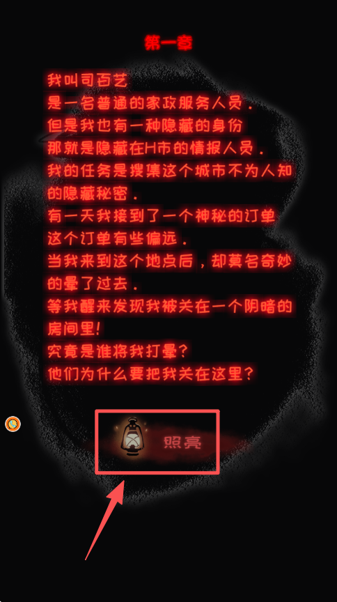 2、阅读第一章的介绍,点击“照亮”按钮,开始解谜。
