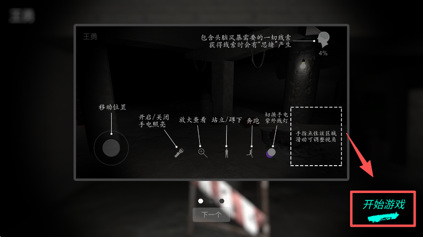 1、点击“开始游戏”按钮,进入游戏,开始探索孙美琪疑案。
