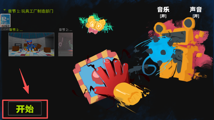 1、找到界面中的 “开始” 按钮并点击,即可进入游戏的初始场景,准备开启游戏流程。
