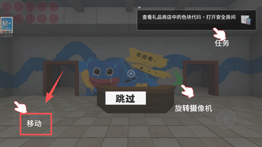 2、进入场景后,可通过 “移动” 按钮控制角色移动,还能旋转摄像机调整视角。