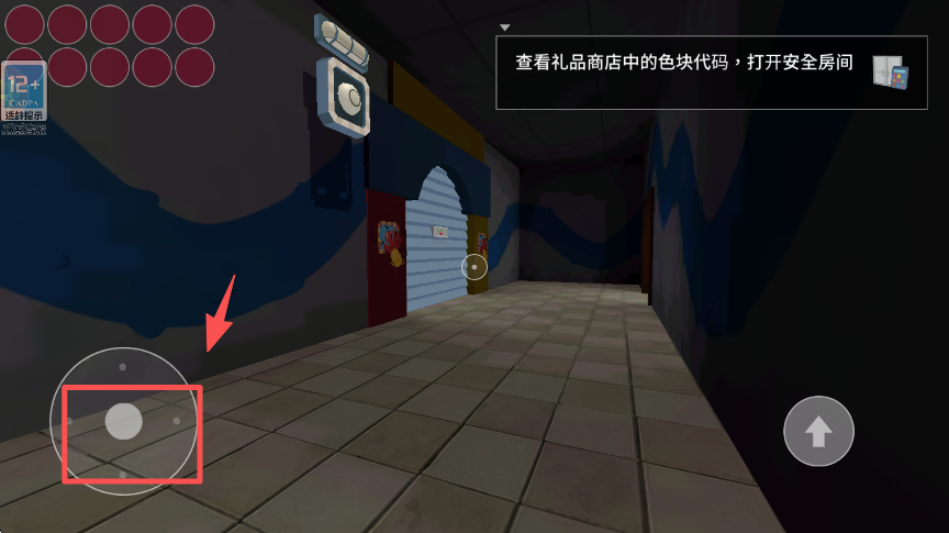3、在场景中拖动左侧的虚拟摇杆,能操控角色在走廊等区域自由移动,探索周围环境。