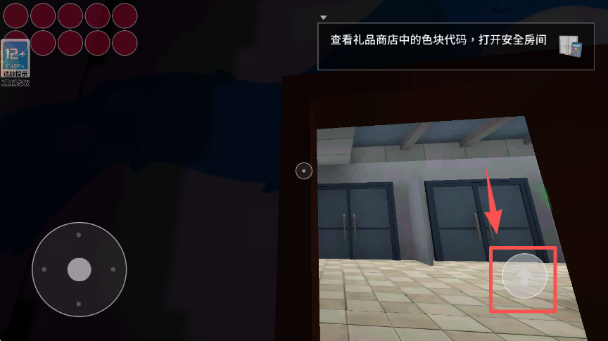 4、当靠近目标门时,点击右侧的向上按钮,可让角色向该门的方向移动,推进游戏进程。