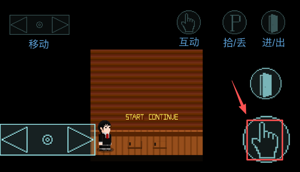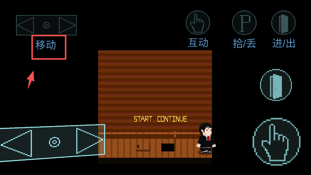 2、在操作界面,使用红色框选的 “移动” 按钮,控制角色在场景内移动。