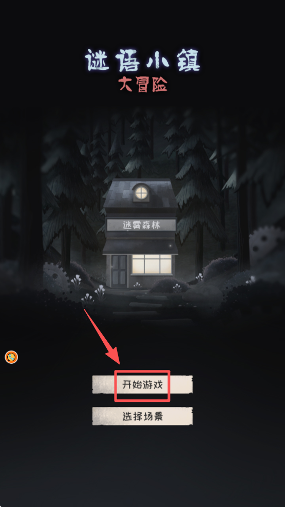 1、在游戏启动界面,点击红色框选的 “开始游戏” 按钮,进入解谜冒险场景。