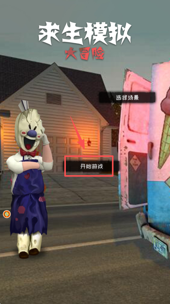 1、在游戏启动界面,点击红色框选的 “开始游戏” 按钮,进入求生冒险场景。