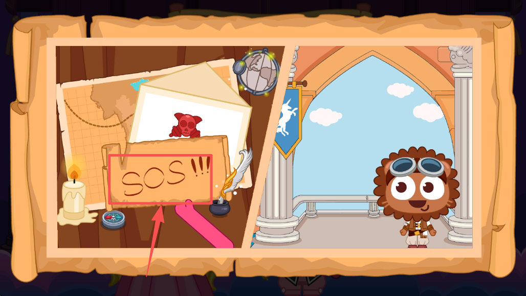 2、查看包含 SOS 信号、地图等元素的线索界面,记录关键提示以便推进剧情。