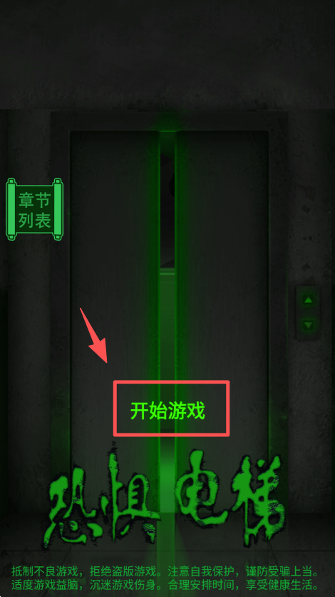 1、进入游戏启动界面,找到 “开始游戏” 按钮并点击,即可进入电梯主题的游戏场景。