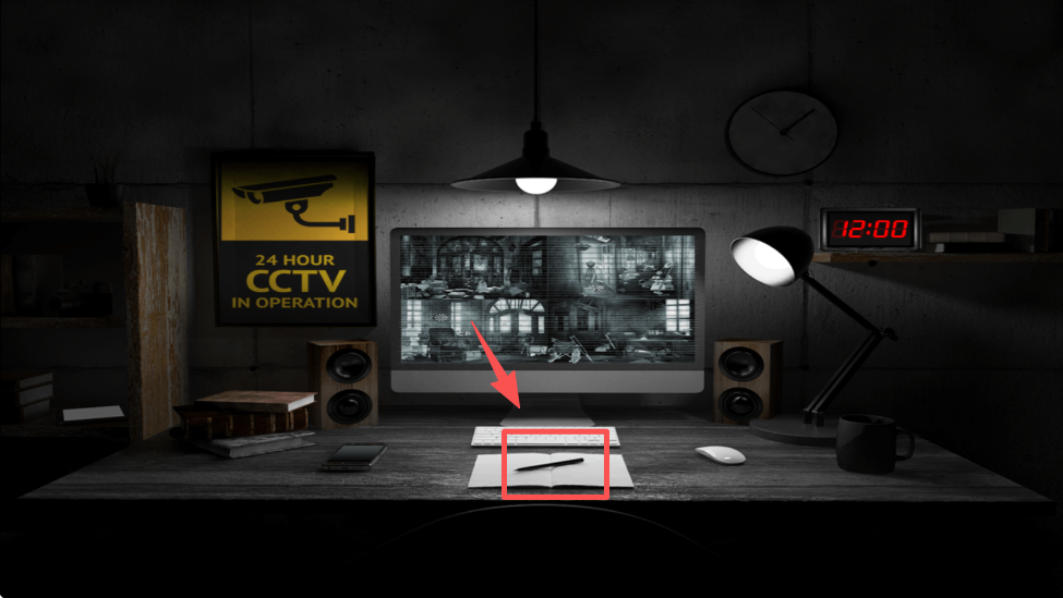 2、点击桌上的笔记本与笔,查看或记录游戏相关的线索信息。