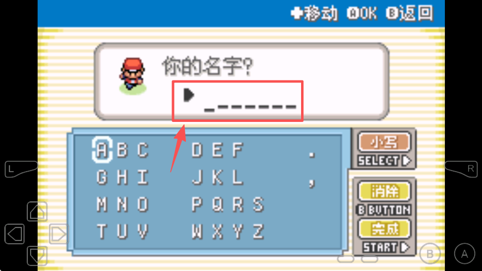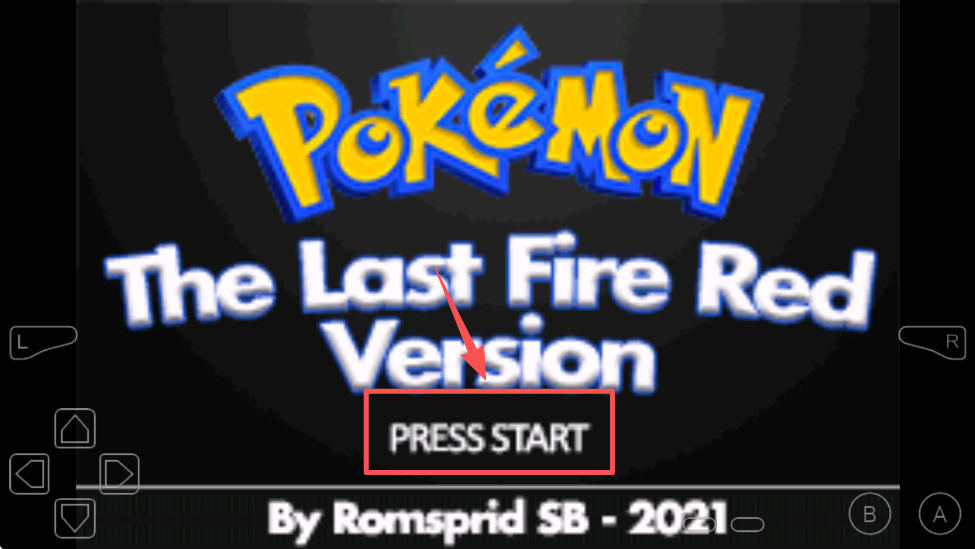 1、点击 “PRESS START” 按钮,进入Pokémon:,The Last Fire Red Version的游戏界面。