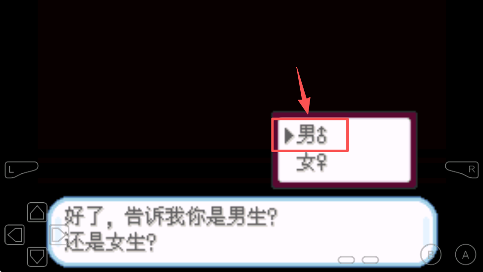 3、在性别选择界面,选择 “男♂” 选项,确定角色的性别设定。