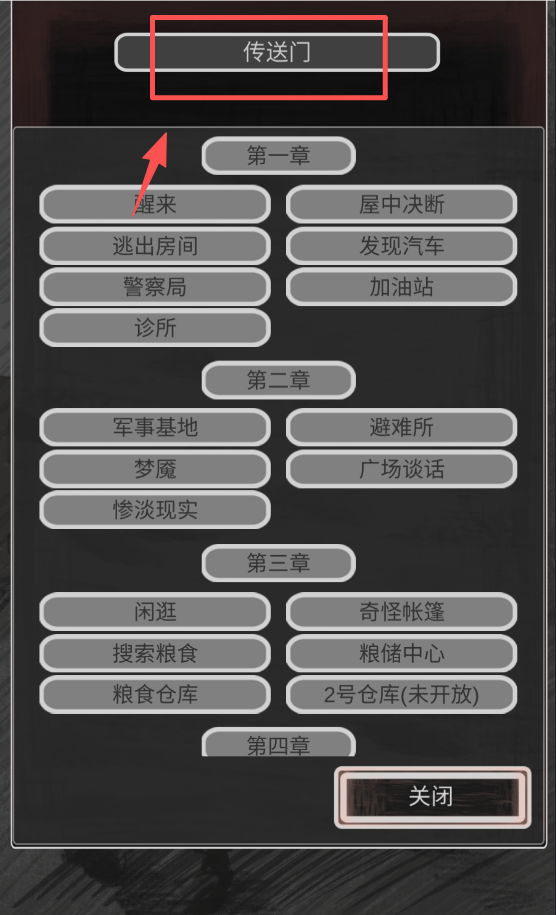 4、进入传送门界面,选择对应章节的关卡,开始生存挑战。