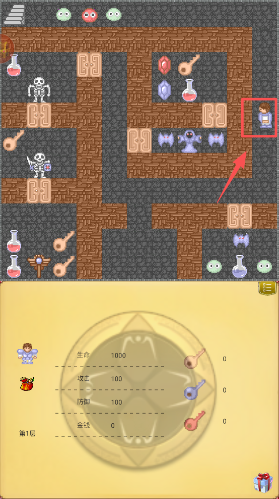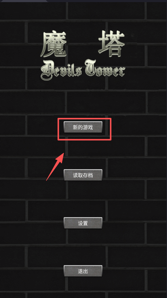 1、选择 “新的游戏” 选项,进入魔塔的第一层冒险场景。