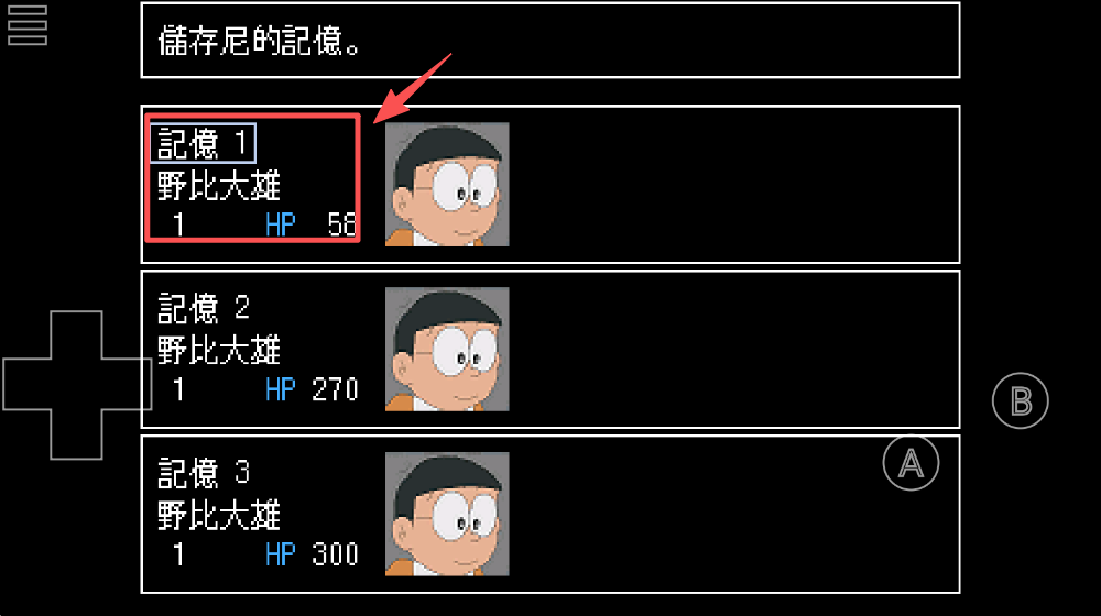 3、选择 “記憶 1” 存档,进入对应的游戏进度。
