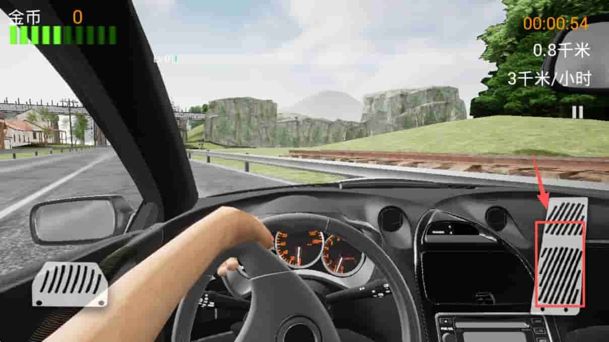 4、通过右侧踏板按钮控制车辆加速,推进赛车挑战流程。