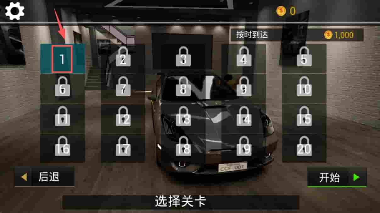 3、点击 “1” 号关卡,确认进入首个赛车挑战关卡。