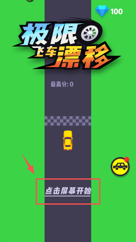 1、点击 “点击屏幕开始” 按钮,进入极限飞车漂移的游戏场景。