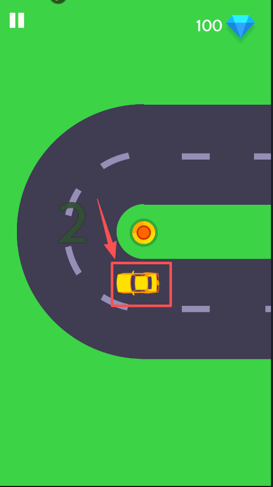 2、操控黄色车辆在赛道上行驶,保持在道路范围内推进赛程。
