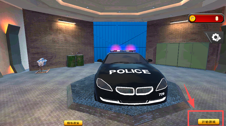 2、选择 “关卡 1”,进入对应的警车驾驶关卡场景。