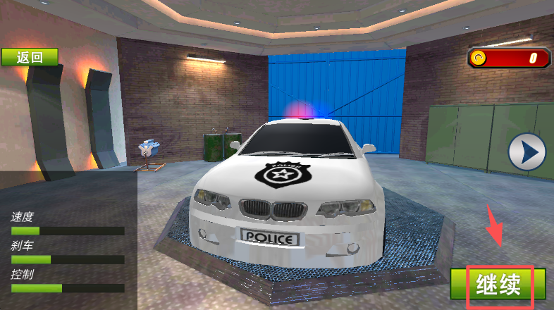 4、点击加速按钮控制警车提速,在赛道中推进驾驶流程。