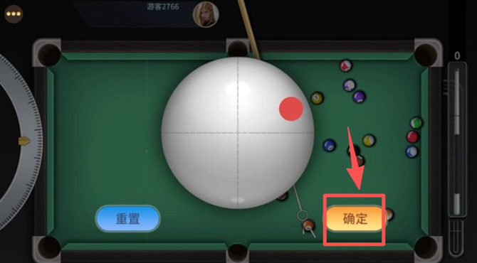 4、调整白球位置后点击 “确定”,完成击球前的准备操作。