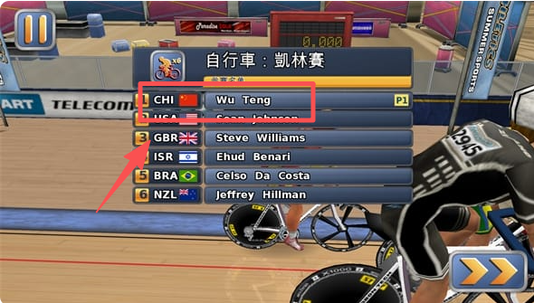 3、选择 “Wu Teng” 对应的选手,参与自行车凯林赛的竞技。