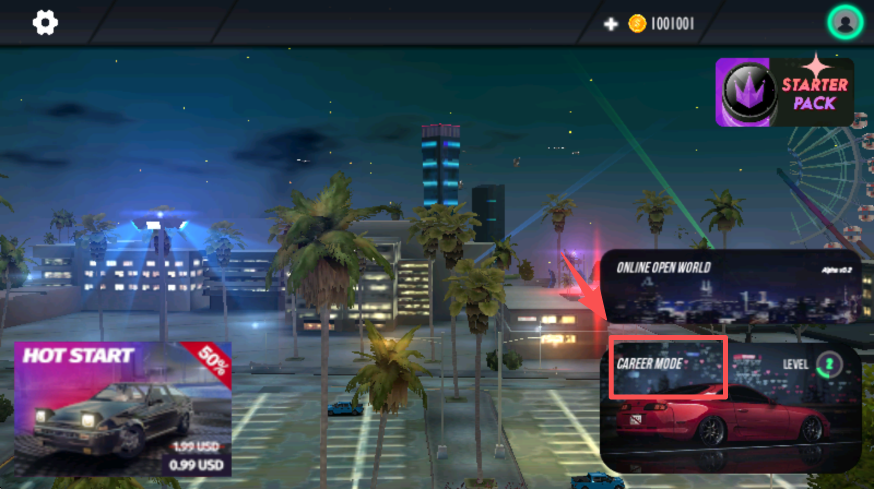1、选择 “CAREER MODE” 模式,进入赛车生涯的游戏场景。